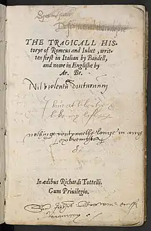 The Tragical History of Romeus and Juliet