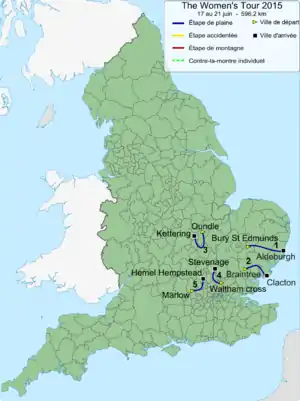 | 5e étape | 21 juin | Marlow – Hemel Hempstead | étape de plaine | 102,6 |