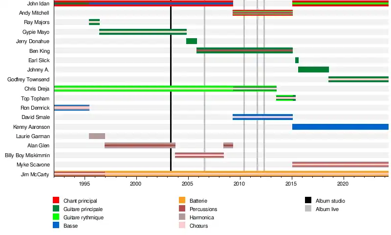 - Andy Mitchell – chant, harmonica, guitare acoustique (2009–2015)