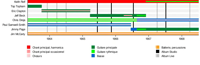 - Keith Relf – chant, harmonica (1963–1968), guitare rythmique (1966–1968)