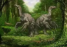 Therizinosaurus est un genre éteint de dinosaures théropodes de la famille des Therizinosauridae. Il a vécu à la fin du Crétacé supérieur au Maastrichtien, de −70 à −66 Ma (millions d'années), en Chine et en Mongolie, dans la formation de Nemegt.
