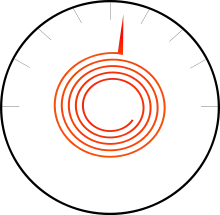 Dans le thermomètre à spirale, la lame est enroulée, une de ses extrémités est fixée au centre d'un cadran et l'autre, en forme de pointe, est libre. Un cadran gradué est placé derrière la lame en spirale. Lorsqu'elle se dilate ou se contracte sous l'effet de la température, la géométrie en spirale convertit cette dilatation en une rotation de l'aiguille sur un cadran gradué.