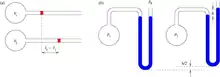 La première variante utilise un réservoir rempli de gaz et un tube ouvert dans lequel se trouve un bouchon mobile séparant le gaz du réservoir de l'air ambiant. Si la pression ambiante reste constante, une variation de température du réservoir va causer une variation du volume du gaz qui va se refléter dans la position du bouchon. La variation de V est proportionnelle à celle de T et on peut donc en obtenir le changement de température.