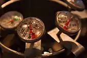 - thermomètre à globe mouillé[31] : noirci et recouvert d'une mèche de mousseline humide ;