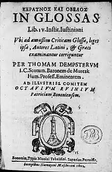 - (la) Keraunos kai obelos in glossas librorum quatuor Institutionum, Bologne, Nicolò Tebaldini, (lire en ligne)