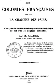 Couverture d'un rapport parlementaire de Thomas Jollivet en 1845.