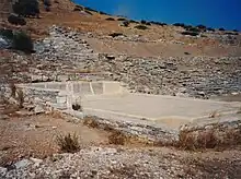 Ce théâtre de 2 700 places est remarquable par son plan semi-elliptique tout à fait unique et par son ancienneté : certains auteurs n'hésitent pas à en faire le premier en date de tous les théâtres grecs.