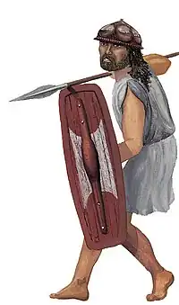 Les thuréophores apparaissent au IIIe siècle av. J.-C. dans le monde hellénistique. Ils sont mentionnés par Plutarque[1] et Pausanias[2] ; ils sont aussi connus par des fresques funéraires à Alexandrie et à Sidon ainsi que des terres cuites trouvées à Séleucie du Tigre. Ils portent un grand bouclier ovale (le thuréos), adapté d'un bouclier celte probablement importé en Grèce par les mercenaires thraces et illyriens. Fabriqué en bois et recouvert de cuir, il possède une bosse en métal et une colonne vertébrale centrale en métal. Il équipe aussi certains peltastes à partir du milieu du IIIe siècle av. J.-C. Ils portent un casque de type macédonien en fer ou en bronze. Ils sont armés d'une longue lance, de plusieurs javelots et d'une épée, ce qui fait d'eux un intermédiaire entre les phalangites et les peltastes. Leur lance possède une extrémité lestée afin de leur assurer l'équilibre. Ils peuvent la planter dans le sol quand ils projettent leurs javelots.