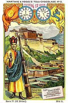 En 1909, un journal bilingue, le Journal vernaculaire du Tibet, le premier de son genre, est imprimé à Lhassa sur des presses importées de Calcutta. Il paraît tous les dix jours et chaque numéro est tiré à 300 ou 400 exemplaires[87]. Son objectif, à la fois éducatif et de propagande, est de faciliter les réformes administratives engagées par Lian Yu et Zhang Yintang[88].