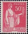 Début d'émission en 1932. Dessiné par Paul Albert Laurens et gravé par Jean Antonin Delzers, ce timbre fut mal accueilli par la critique qui le désigna sous le surnom de « timbre de la Paix gauchère »[1].