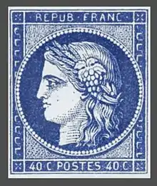 - L'un des plus anciens timbres-poste non émis en raison d'un changement de tarif est le 20c Cérès bleu de 1849 : Cette figurine avait été imprimée à partir d' pour remplacer le 20c noir de la même série par un timbre plus clair sur lequel les annulations apparaîtraient mieux. Mais, par économie, l'administration avait voulu épuiser le 20c noir avant d'émettre la nouvelle figurine. Or, avant que cet épuisement se réalise, le tarif de la lettre simple fut porté, le de 20c à 25c. Dès lors le stock de ce 20c bleu, privé de toute utilité fut détruit. Seuls quelques exemplaires, conservés sans doute comme justificatifs par la Monnaie avant de tomber entre les mains des collectionneurs, ont été conservés.