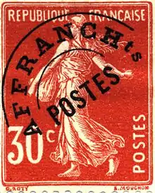 En , apparaît la surcharge en arc de cercle « AFFRANCHts - POSTES », toujours en usage au début du XXIe siècle.