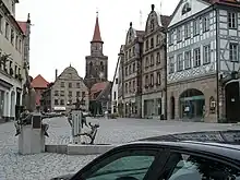 Depuis 2002, ont été classés les centres de Stralsund et Wismar, dans le Mecklembourg-Poméranie-Occidentale. Le timbre de 0,70 € en montre les façades de l'hôtel de ville de Stralsund à gauche et de l'église Saint-Georges de Wismar. Sur les côtés du timbre, sont reproduits les sceaux des deux villes, sur lesquels figure un navire.