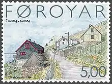 Le , est émis un bloc-feuillet de dix timbres de 5 DKK illustrés de peintures de paysages des villages de l'île de Suðuroy : Akraberg, Akrar, Fámjin, Froðba, Hov, Hvalba, Øravík, Porkeri, Sandvík et Sumba. Les marges du feuillet sont illustrées et portent un poème sur l'île de Steinbjørn B. Jacobsen.
