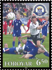 Le , sont émis deux timbres commémoratifs de 5 DKK pour le centenaire des clubs du HB Tórshavn et du KÍ Klaksvík et de 6,50 DKK pour le centenaire de la Fédération internationale de football association (FIFA).