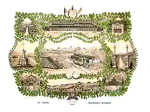 Intérieur du stand de tir lors du tir fédéral de 1863 à La Chaux-de-Fonds.