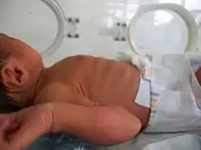 Tirage intercostal chez un nouveau-né, signe de détresse respiratoire[1]