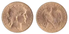 Le titre des pièces de 20 francs en or (depuis le franc germinal) jusqu'en 1914 était de 900 millièmes d'or fin et de 100 millièmes de cuivre.