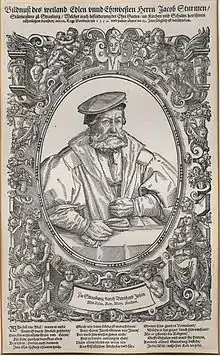 Durant l'hiver 1569-1570, Tobias Stimmer se rend à Côme, dans le nord de l'Italie, à la demande de l'éditeur bâlois Pietro Perna, pour y reproduire par dessin les portraits de la célèbre galerie du cardinal-historien Paolo Giovio, ou Paul Jove. Ces dessins illustreront, quelques années plus tard, la publication de l'ouvrage Elogia virorum illustrium. Stimmer revient à Strasbourg, au printemps 1570, à l'invitation de Bernhard Jobin, et devient le parrain du fils aîné de celui-ci le suivant. Jobin est le beau-frère de l'écrivain protestant Johann Fischart, et ainsi naît la collaboration entre Jobin, Fischart et Stimmer.