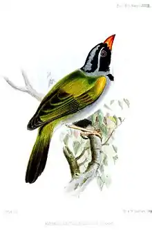 Dessin de 1855 représentant Arremon aurantiirostris erythrorhynchus.