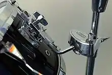 Il existe différents types d'attaches, la plus répandue consistant en un tube articulé rentrant dans deux orifices, l'un pratiqué sur la circonférence du tom, l'autre sur la partie supérieure de la grosse caisse. D'autres modèles utilisent, en guise d'articulation, une boule en synthétique très résistant enserrée entre deux parties mobiles, appelée rotule, qui permet un positionnement du fût plus précis et rapide car ne faisant pas appel à la clé de réglage.