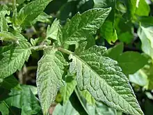 La tige et les feuilles portent deux types de poils : simples ou glanduleux, ces derniers contenant une huile essentielle qui donne son odeur caractéristique à la plante.