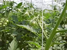 Chez la tomate, la photosynthèse est du type « en C3 », c'est-à-dire qu'en première étape elle produit des glucides à trois atomes de carbone[13]. Elle est influencée notamment par la température de l'air et sa teneur en CO2 et par l'intensité lumineuse.