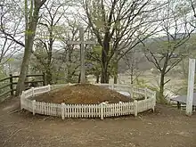 Cimetière du site archéologique de Qumrân. Si le corps de Jésus n'avait pas été placé dans la tombe de Joseph d'Arimathie, il aurait été inhumé dans une fosse recouverte de cailloux, comme c'était le cas pour la majorité des Juifs des classes populaires ou les condamnés dans la Palestine antique[13].