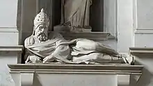 - 1523 - Sous le pape Adrien VI, procès des Della Rovere, famille du pape Jules II, entraînant un nouveau projet avec la réduction de l'échelle et du nombre de statues (une demi-douzaine).