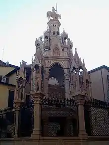 Le tombeau de Cangrande 1er, le plus grand seigneur della Scala, est le premier des trois tombeaux monumentaux des Scaligerì à avoir été construit. Il a été érigé au-dessus de la porte d'entrée de l'église Santa Maria Antica.
