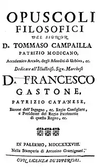 Tommaso Campailla (né à Modica le et mort dans la même ville le ) est un philosophe, poète et naturaliste italien. Il est considéré comme un des penseurs les plus originaux de la première moitié du XVIIIe siècle.