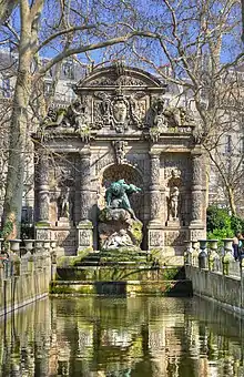 Tommaso Francini présente le premier plan du jardin en 1625. Pour le jardin du palais du Luxembourg, il avait proposé à la reine de terminer l'horizon, vers le sud, par la fontaine de Démorgorgon[26]. Pour Marie de Médicis, cela lui rappelait celle de la villa médicéenne de Poggio a Caiano, près de Florence[27]. Mais le projet n'a pas été achevé à la mort de la reine en 1642.