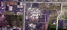 La tornade détruisit complètement le super-centre Walmart, un magasin Home Depot et de nombreux autres commerces dans le même secteur. Les fermes de toit métalliques arrachées au Home Depot furent retrouvées brisées et tordues dans les champs voisins. Des voitures furent projetées des centaines de mètres plus loin, l'asphalte de stationnements fut décapé et de grands semi-remorques furent projetés jusqu'à 200 mètres. Un complexe d'appartements de trois étages à proximité fut également dévasté et deux tours de téléphonie mobile furent retrouvées dans les débris. Des plaques d'égout de 45 kg furent aspirées et une usine d'embouteillage de boisson gazeuse Pepsi-Cola fut complètement rasée[10],[13]. Plusieurs morts furent signalés dans cette zone et les dommages étaient d'intensité EF5[1],[14].