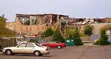 Trois personnes furent blessées dans un lave-auto près de l’église unie quand le toit fut arraché. Deux d’entre elles étaient dans une camionnette donc les vitres furent brisées par les débris et l’autre, un homme sur une motocyclette Harley-Davidson, s’est fait casser les jambes quand il s’est retrouvé entre son véhicule et une partie du mur tombé. Les trois victimes avaient cherché refuge à cet endroit pour s’abriter des grêlons de la taille de balles de baseball (5 cm de diamètre) qui précédèrent la tornade.