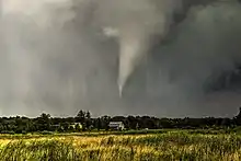 - La tornade traverse une zone où il n'y a pas de structures ou de végétation susceptibles d'être endommagées[3] ;