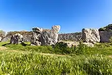 L'enceinte à taula est datée du Ve siècle av. J.-C. Lors des fouilles de l'enceinte, des poteries d'origine locale, réalisées à la main, et des poteries importées d'Italie et de Mégare ont été découvertes[8].