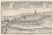 Sa situation par rapport à l'Hôtel de ville et aux remparts.