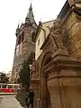 Après qu'une tempête eut complètement détruit le toit de l'édifice en 1801, la tour reçut de nouveau en 1878 un toit en forme de flèche nouvellement conçue, d'une hauteur de 32,6 mètres. Les opérations de réparation et de transformation ont été menées par l'architecte Josef Mocker .
