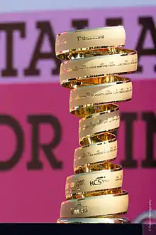 Le Tour d'Italie (en italien : Giro d'Italia), appelé aussi Giro, est une compétition cycliste par étapes qui a lieu principalement en Italie chaque année, et qui est considérée comme la deuxième en importance après le Tour de France. Elle est créée par le journal La Gazzetta dello Sport d'Eugenio Camillo Costamagna sur une idée du journaliste Tullo Morgagni[1] en 1909. Elle parcourt l'Italie et passe parfois par des pays étrangers tels que la Suisse ou les Pays-Bas récemment.