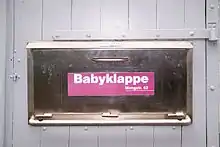 - Allemagne : La première Babyklappe moderne est installée en 2000 ; en 2005 il y en avait 80 dans tout le pays[12] et 98 en 2013[13].