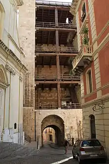 Le bâtiment, l'un des monuments les plus importants de la ville, est situé dans le quartier Castello à côté de l'église de San Giuseppe. La visite du monument permet d'admirer de vastes panoramas sur la ville et ses environs.