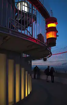 La tour est équipée de 3 phares rotatifs de 1 600 W en plus des balises rouges habituelles. Ceux-ci sont allumés de nuit et par mauvais temps et portent à 50 km.