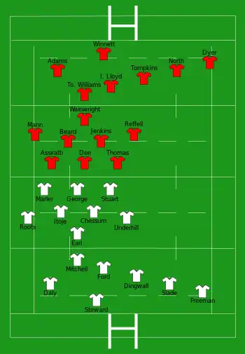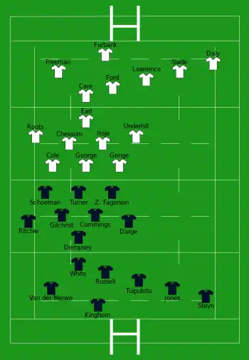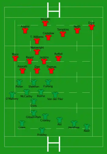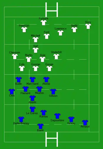 Lors de la semaine précédant la troisième journée, le demi de mêlée titulaire Alex Mitchell déclare forfait pour ce match, il est remplacé par Harry Randall[6].