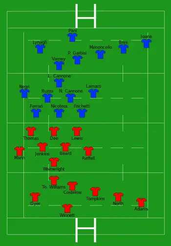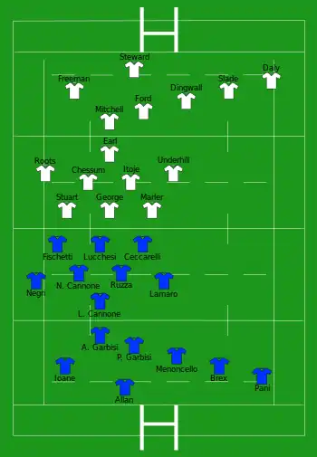 | Centre | Juan Ignacio Brex, Tommaso Menoncello, Federico Mori, Marco Zanon | |