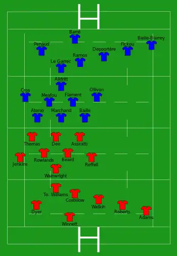 Le , pour préparer la troisième journée, Marko Gazzotti est convoqué pour la première fois à la suite du forfait de Grégory Alldritt, Charles Ollivon est donc le capitaine en son absence, Romain Taofifénua fait également son retour dans le groupe[27]. Le lendemain, Gaëtan Barlot déclare forfait, il est remplacé par Maxime Lamothe[28].