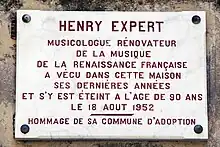 - Henry Expert (1863-1952), musicologue, spécialiste de la musique de la Renaissance en France, a vécu et est mort à Tourrettes-sur-Loup.