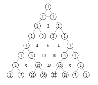 On montre que, pour tout N, le graphe des Tours de Hanoï à N disques est identique à celui obtenu à partir d'un Triangle de Pascal d'ordre 2N, où l'on relie par une arête les coefficients binomiaux impairs[4].