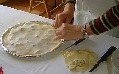 La grande révolution dans la recette a été de la faire avec une pâte étirée, comme le baklava turc, appelée « voile de la mariée ». Traditionnellement, on réserve le mot de « tourtière » à la pâte étirée et celui de « croustade » à une pâte feuilletée au beurre, postérieure (XVIIIe siècle).