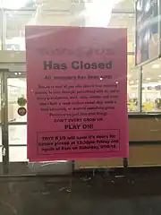 Affiche signalant la fermeture d'un magasin américain de l'enseigne en (East Brunswick, New Jersey).