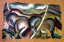 - une gouache[1] de Franz Marc : Pferde in Landschaft ;